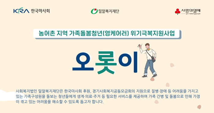 [스포츠서울 이웅희기자] 한국마사회가 경기·전북·경북·제주 농어촌 소재 가족돌봄청년 지원에 나선다.