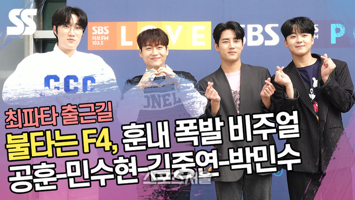 [스포츠서울ㅣ윤수경기자] ‘불타는 트롯맨’ 유닛 ‘불타는 F4(민수현, 김중연, 박민수, 공훈)’가 24일 오후 서울 양천구 목동 SBS에서 진행되는 ‘최화정의 파워타임’ 라디오 일정을 위해 출근하고 있다.