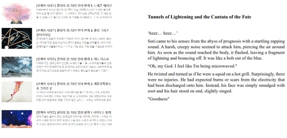 한국소설을 영문으로 출판한 사례는 있었지만, 한국소설을 영문으로 연재하는 것은 최초의 사례여서 눈길을 끈다. 현재 중앙일보 소년중앙을 통해 연재 중인 ‘판게아 시리즈’의 6번째 작품 ‘몰타의 검-72년만의 번개’는 ‘The Sword of Malta - Lightning in 72 Years’라는 제목으로 영문으로 연재된다.