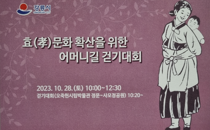 [스포츠서울ㅣ김기원기자] 강릉시는 모자화폐의 주인공인 신사임당과 율곡 이이 선생의 효(孝) 정신을 계승·선양하기 위해 오는 오는 28일(토) 오전 10시 오죽헌시립박물관 정문에서 ‘효(孝)문화 확산을 위한 어머니길 걷기’ 행사를 개최한다.