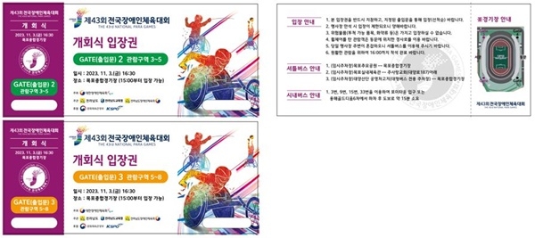 [스포츠서울|조광태기자] 전라남도는 제43회 전국장애인체전 개회식 입장권을 26일부터 선착순으로 무료 배부한다고 밝혔다.