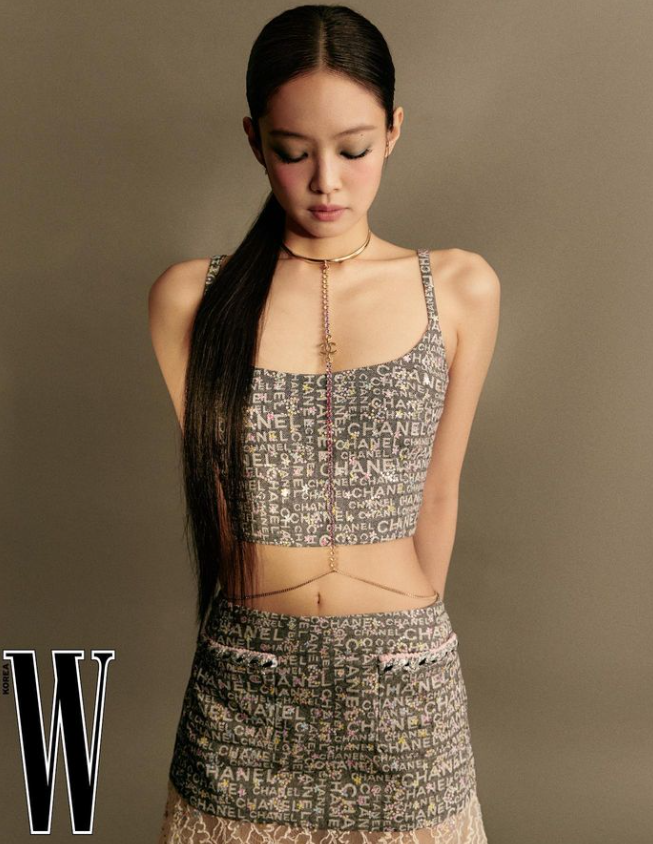 W코리아는 25일 공식 채널에 패션 브랜드 샤넬 앰버서더 제니의 화보를 공개했다. 화보에서 제니는 헤어 밴드와 손목 밴드를 착장한 애슬레저룩과 샤넬 로고가 촘촘히 박힌 탱크탑과 바지, 허리 와 어깨라인에 과감한 절개가 들어간 검정 비치웨어까지 다양한 스타일링을 소화했다.
