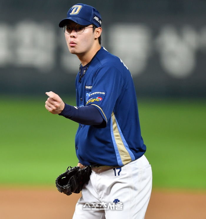 그는 지난 두산과의 와일드카드(WC) 결정전부터 준PO 1·2차전까지 이번 가을야구 3경기에 모두 등판해 3.1이닝 무실점 호투로 팀 허리를 든든하게 받쳐주고 있다. 이번 가을야구에서 김영규거 수확한 기록은 2승1홀드. NC가 거둔 3승 가운데 2승을 혼자 책임진 셈. 피로가 쌓일 만도 하지만 한 점차 쫓기는 상황에서도 마운드를 지켜내며 제몫을 다해냈다.