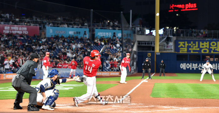 이어 최정이 좌측 담장을 넘기는 그랜드슬램을 쐈다. 자신의 포스트시즌 통산 13번째 대포를 만루 홈런으로 장식했다. 포스트시즌 통산 최다 타점(43개) 신기록을 쓰는 순간이었다. 5-3 역전 성공이다.