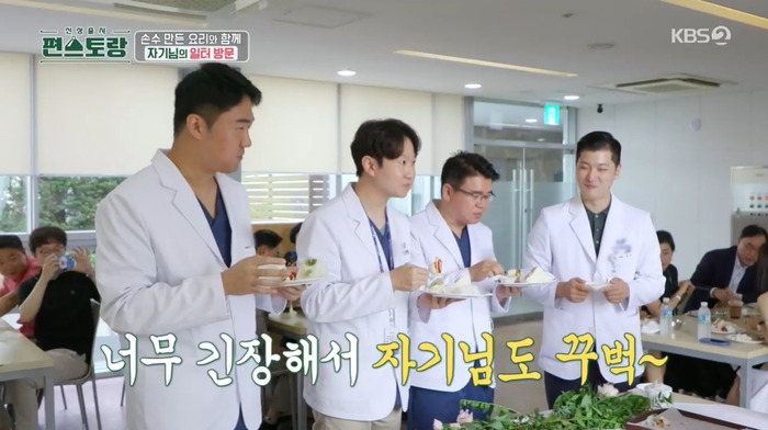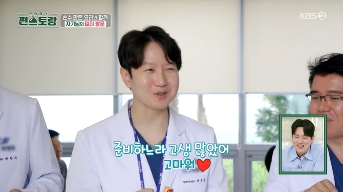27일 방송된 KBS2 ‘신상출시 편스토랑’에는 편셰프 이정현이 남편이 일하는 병원을 찾아 깜짝 이벤트를 여는 모습이 그려졌다.
