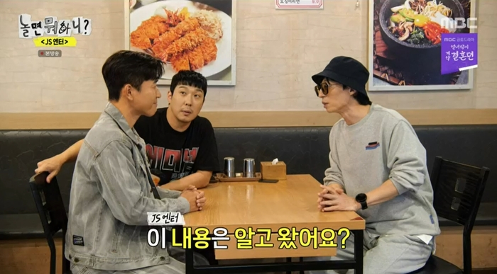 유재석은 김종민에게 “혹시 이 내용(JS엔터 그룹 원탑)은 알고 왔는가”라고 물었다. 김종민은 “큰 틀은 모른다”라고 당당하게 답해 웃음을 자아냈다.