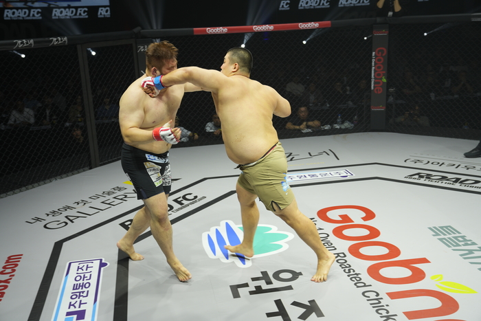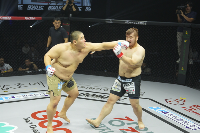 김명환과 심건오는 29일 강원도 원주시 서원대로 원주 치악체육관에서 열린 ‘굽네 로드FC 066’ 대회에서 무제한급 경기로 맞붙었다.