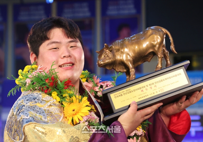 김민재는 밀어치기를 허용하며 첫판을 내줬다. 그러나 두번째 판에서 왼덧걸이로 응수하며 동점을 만들었고, 세번째 판에서 잡채기, 네번째 판에서는 들배지기를 성공시키며 황소트로피의 주인공이 됐다.