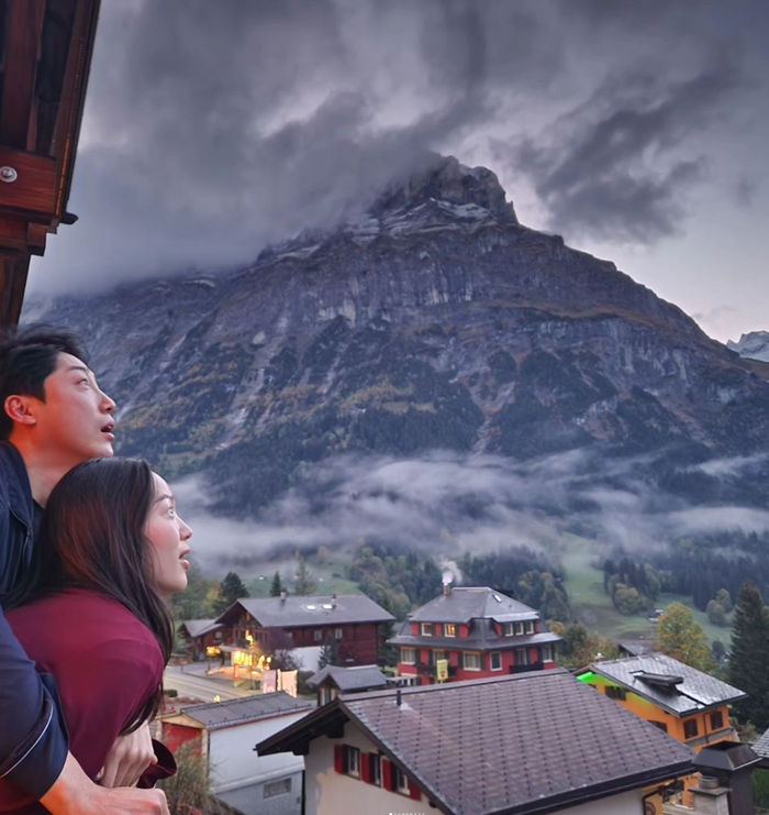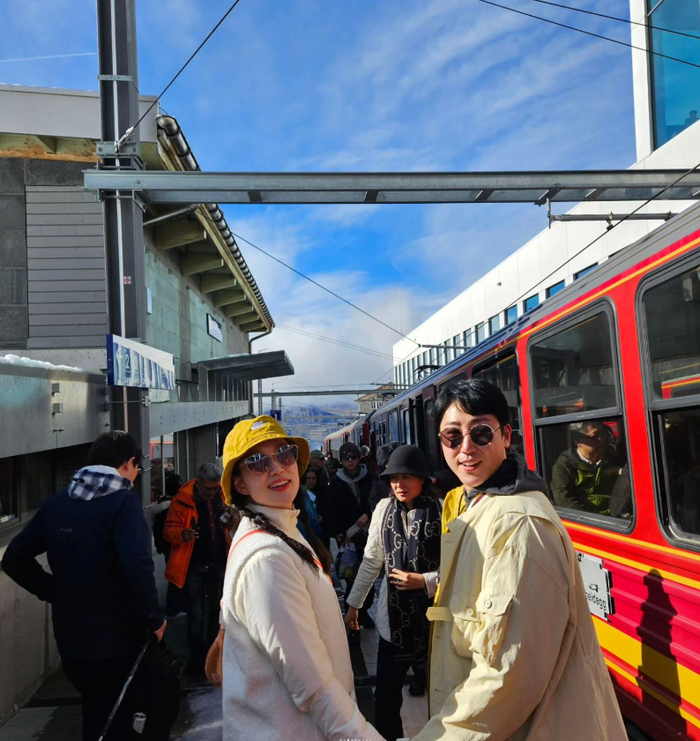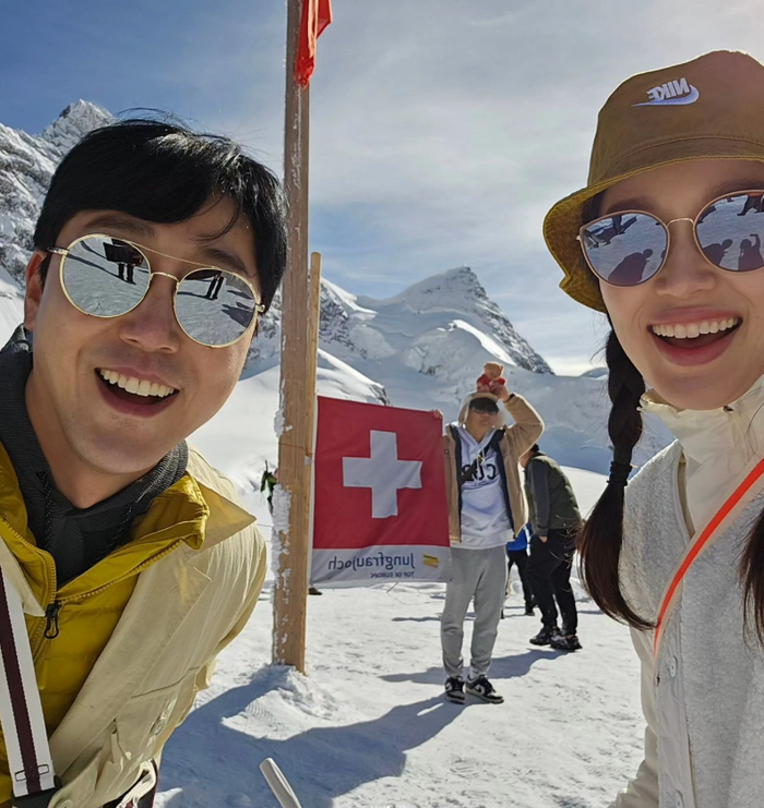 손헌수는 29일 자신의 채널에 “스위스에 흔한 베란다 뷰우우~압도적!”이라는 글과 함께 거대한 설산이 고스란히 드러난 베란다 너머 고개를 내밀고 있는 부부의 사진을 공개했다.