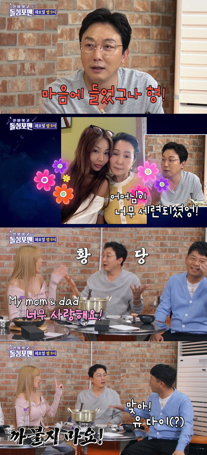 탁재훈이 “어머니가 너무 세련되셨더라”라고 하자 이상민은 “마음에 들었구나?”라며 몰아갔고 제시도 “우리 엄마 아빠 너무 사랑한다. 우리 아빠가 깔 수도 있다. 우리 아빠 완전 상자”라고 재훈몰이에 동참했다.
