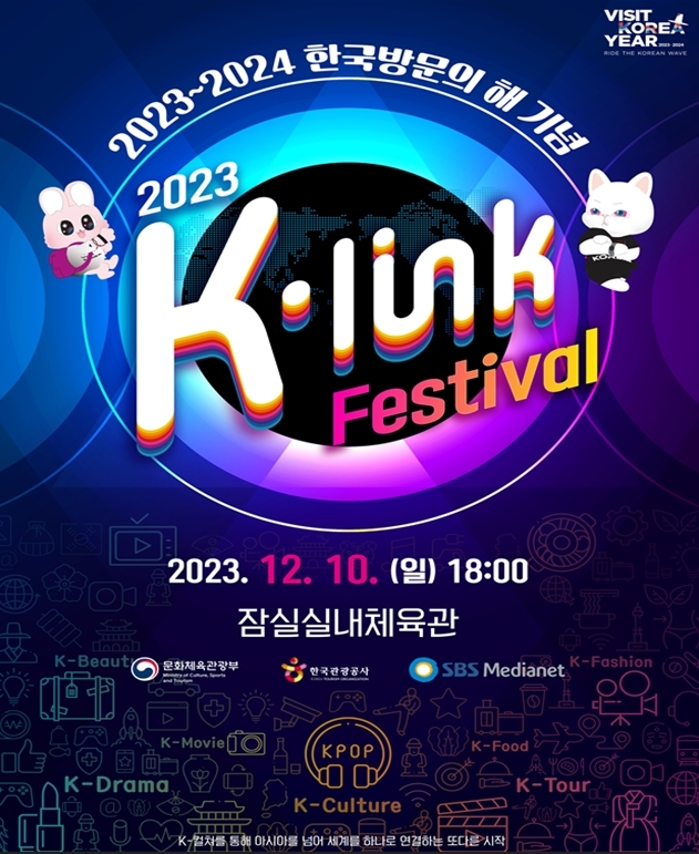 [스포츠서울 | 황철훈기자] 문화체육관광부와 한국관광공사가 ‘2023~2024 한국방문의 해’를 맞아 오는 12월 10일 서울 잠실실내체육관에서 ‘2023 K-링크 페스티벌’을 연다. ‘K-링크’는 K-컬처로 세계와 한국을 이어 나간다는(Link) 의미다.