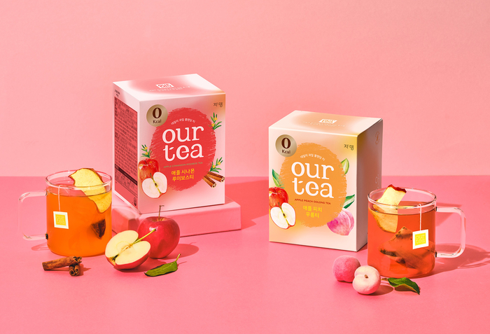 아워티 ‘애플 피치 우롱티’는 중국 10대 명차로 유명한 철관음 우롱차와 국내산 복숭아 과즙을 블렌딩 했으며, ‘애플 시나몬 루이보스티’는 깊은 풍미의 레드 루이보스 잎과 상큼 달콤한 제철 사과 과즙 블렌딩, 건조 사과 슬라이스가 조화를 이룬다고 전했다. 두 플레이버 모두 1포당 0kcal, 당류 0g로 칼로리다.