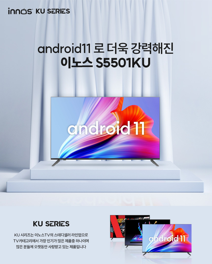 S5501KU는 이노스TV의 스테디셀러 라인 제품 중 하나로, 취향에 따라 안드로이드 OS와 구글 OS·VA 패널과 LG IPS 패널을 선택 구매할 수 있다. 색상 선명도를 올려주는 HDR 기술은 HDR10과 돌비 비전, HLG가 지원되며, 최대 400CD의 밝기를 통해 다채로운 색상을 지원한다. 돌비 에트모스 지원 사운드와 함께 콘텐츠를 감상할 수 있다.