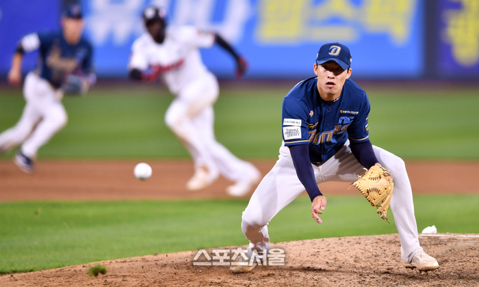 NC 우완투수 류진욱이 31일 수원KT위즈파크에서 열린 2023 프로야구 KT위즈와 NC다이노스의 플레이오프 2차전 7회말 1사 1,2루에서 장성우를 투수앞 땅볼 병살타로 처리한 후 환호하고 있다. 2023.10.31. 수원 | 강영조기자 kanjo@sportsseoul.com