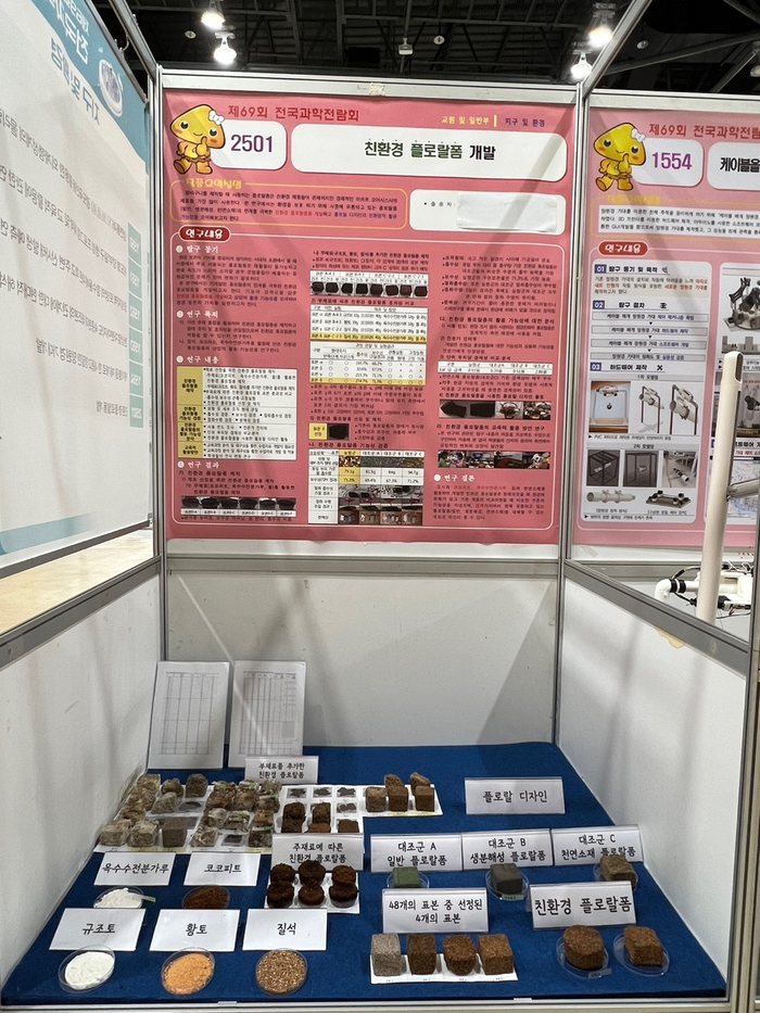 도내 출품작 중에서는 교원부 ‘친환경적으로’ 팀(우산초 최정윤, 문막초 박가람, 거성초 김진영 교사)의 「친환경 플로랄폼 개발」 작품이 국무총리상을 수상하며 화제를 모았다.