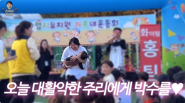 영상 속 정주리 가족은 아들의 유치원 가을 운동회를 위해 총출동했다.