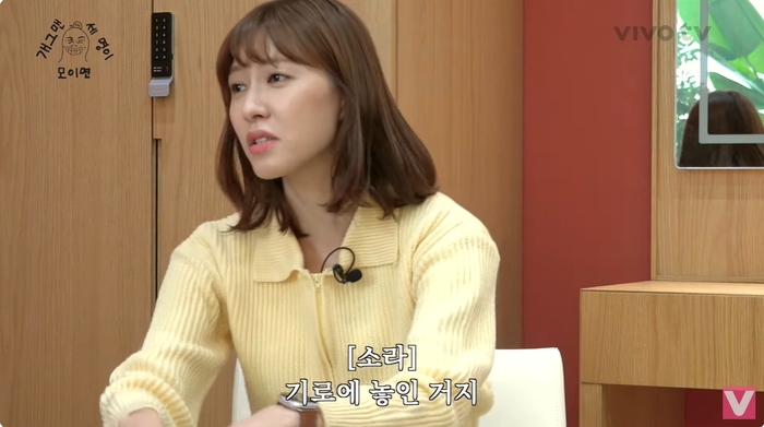 박소라는 “혜선 언니가 독일에서 식당 서빙 알바를 했었다. 하도 쟁반을 많이 들어서 오른쪽 골반이 약간 주저앉을 정도였다. 그래서 거기 사장님이 언니가 너무 잘해서 스카우트하려 했다”라고 밝혔다.
