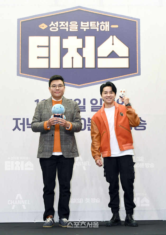 강사 정승제(왼쪽)와 조정식이 2일 서울 마포구 스탠포드호텔에서 진행된 채널A '성적을 부탁해 : 티처스' 제작발표회에서 취재진을 향해 포즈를 취하고 있다. '성적을 부탁해 : 티처스'는 공부와 성적이 고민인 중?고등학생에게 대한민국 최고의 강사진이 직접 코칭해 성적을 올려주는 에듀 솔루션 프로그램으로 전현무, 한혜진, 장영란이 MC를 맡았으며 정승제, 조정식이 강사로 출연한다. 2023. 11. 2. 박진업기자 upandup@sportsseoul.com