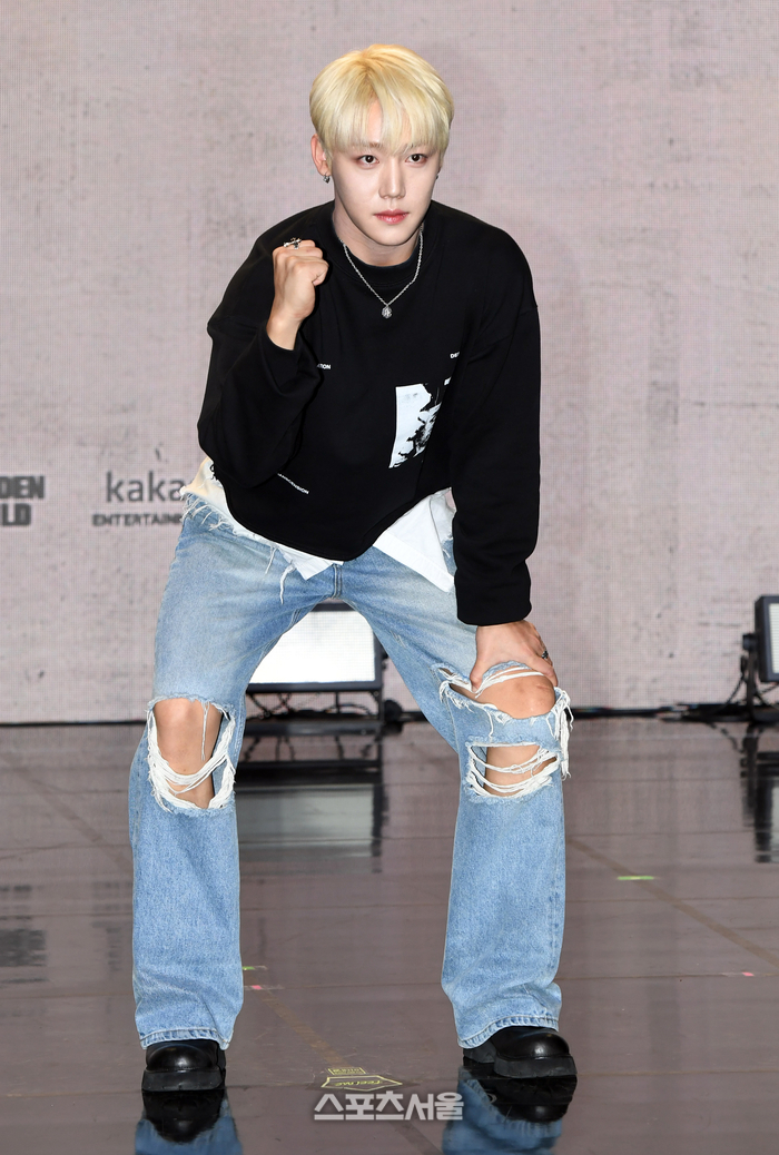 골든차일드(Golden Child) 이장준이 2일 서울 강남구 일지아트홀에서 진행된 세 번째 싱글 앨범 '필 미(Feel me)' 발매 기념 쇼케이스에서 취재진을 향해 포즈를 취하고 있다. 2023. 11. 2. 박진업기자 upandup@sportsseoul.com