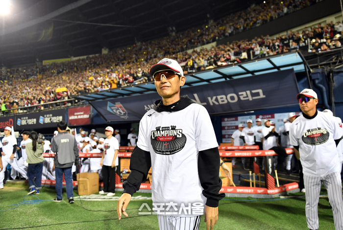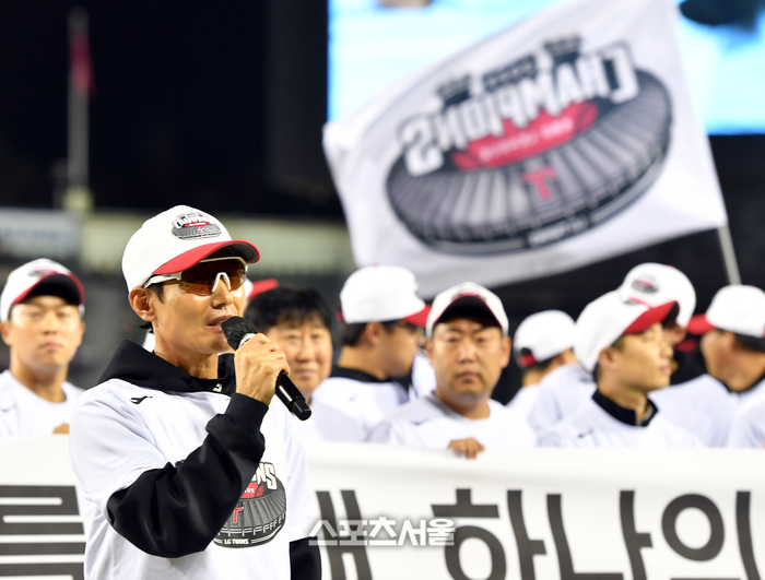 감독은 물론 선수단 전체가 우승 하나로 뭉쳤다. 그만큼 긴 시간이 걸렸고 뜨거운 눈물도 많이 흘렸다. 절실함이 당당함과 과감함으로 이어진다면 염원의 통합 우승을 이룰 수 있다. LG 염경엽 감독이 짧지 않은 기간에도 집중력을 유지하는 선수단을 향해 밝은 미소를 지었다.