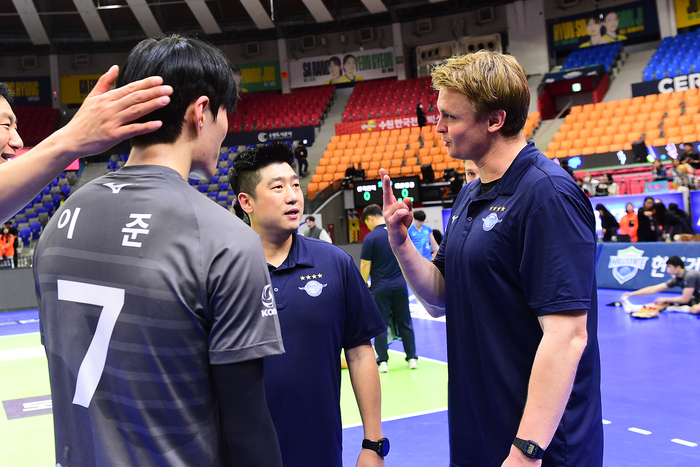 신장 187cm로 비교적 단신인 이준은 이날 혼자 블로킹 6득점을 기록하며 한국전력 공격수들의 전의를 꺾었다. 이준은 “감독님이 블로킹 손 모양을 강조하신다. 보고 손을 움직였다. 운 좋게 얻어걸린 것도 있지만 연습 때 한 게 잘 나왔다. 연습 때부터 손이 벌어지지 않게 모아서 뜨는 데 집중했다”라는 비결을 들려줬다.