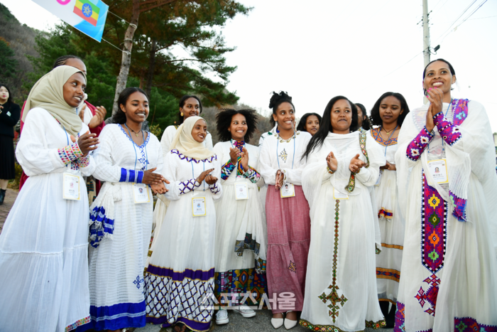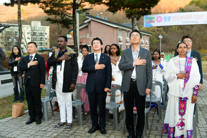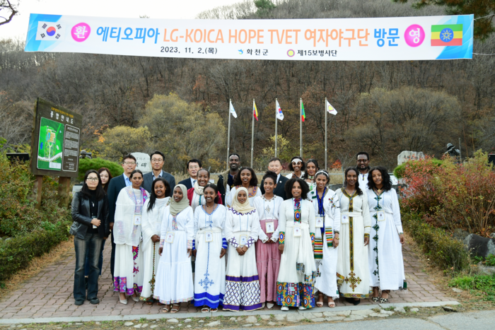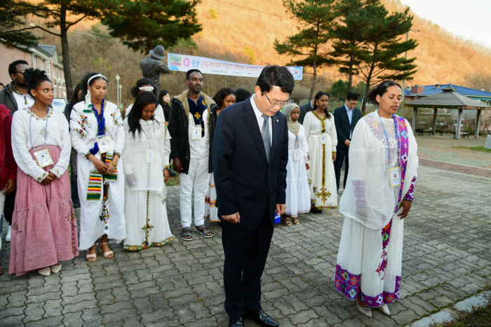 [스포츠서울ㅣ김기원기자]에티오피아 ‘LG-KOICA HOPE TVET 여자 야구단’ 지난 2일 오후 화천군 상서면 산양리 적근산 지구 에티오피아 참전 기념비를 방문해 헌화하고 참배했다. 이날 참배에는 최명수 화천부군수도 참여해 에티오피아 야구단에게 기념품을 전달했다.