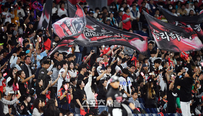 플레이오프 들어서도 수원KT위즈파크에서 열린 1~2차전은 모두 매진이 불발됐다. 각각 1만6241명과 1만5453명이 들어왔다. ‘거의’ 만원이었지만, 남은 표는 있었다.