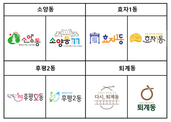 효자1동, 퇴계동, 소양동, 후평2동은 주민자치회를 중심으로 지난 8월부터 시작된 ‘주민주도 마을 브랜드 개발’ 사업에 참여하여 오리엔테이션과 마을별 워크숍 등을 거쳐 각 마을의 로고와 슬로건 시안을 개발하였다.