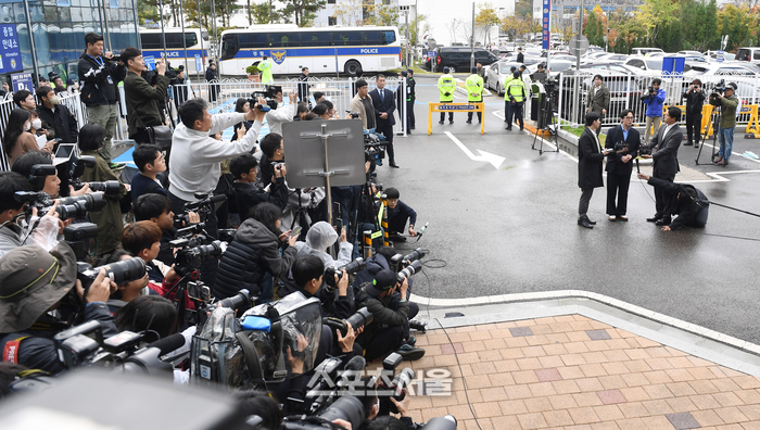 마약 투약 혐의를 받는 가수 지드래곤(본명 권지용)이 6일 오후 조사를 받기 위해 인천논현경찰서로 들어서면서 취재진과 인터뷰를 하고 있다. 2023. 11. 6. 인천 | 박진업기자 upandup@sportsseoul.com