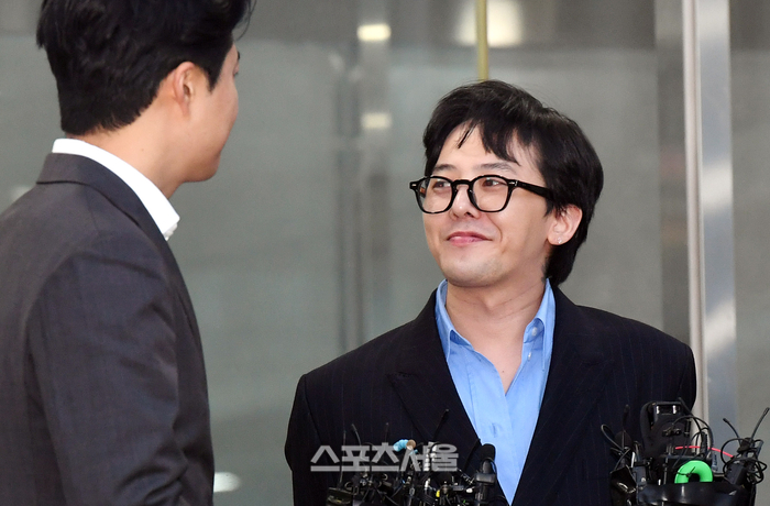 마약 투약 혐의를 받는 가수 지드래곤(본명 권지용)이 6일 오후 인천 논현경찰서에서 4시간에 걸친 조사를 받은 뒤 취재진과 인터뷰를 하면서 미소를 짓고 있다. 2023. 11. 6. 인천 | 박진업기자 upandup@sportsseoul.com