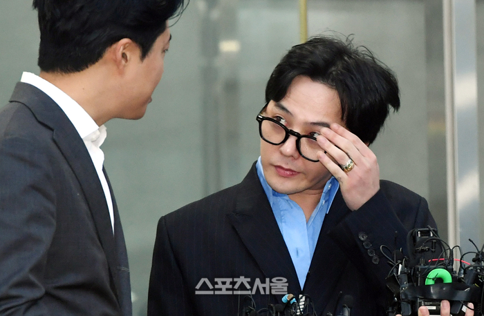 마약 투약 혐의를 받는 가수 지드래곤(본명 권지용)이 6일 오후 인천 논현경찰서에서 4시간에 걸친 조사를 받은 뒤 취재진과 인터뷰를 하고 있다. 2023. 11. 6. 인천 | 박진업기자 upandup@sportsseoul.com