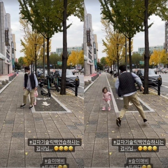 5일 한지혜는 자신의 채널에 “#갑자기슬릭백연습하시는검사님 #슬이애비 #트렌디”라는 글과 함께 영상을 게재했다. 영상에서 최씨는 딸이 지켜보는 가운데 슬릭백 춤에 도전하는 모습이다.