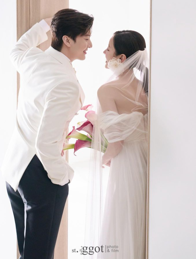 [스포츠서울 | 박효실기자] 아이돌커플 엠블랙 천둥(33)과 구구단 미미(30)의 사랑스런 웨딩화보가 공개됐다.