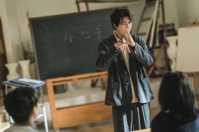 혼자가 익숙한 차진우의 고요한 일상은 ‘정모은’으로 열띤 변화를 맞는다고. 정모은을 향해 수어로 마음을 전하는 차진우는 그 어느 때보다 따뜻한 미소와 생기 넘치는 눈빛이 설렘을 더한다.