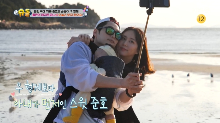 김준호는 아내의 서프라이즈 등장에 반가움을 감추지 못했다. 그렇게 뭉친 가족은 사진을 남기며 바닷가 데이트를 즐겼다.