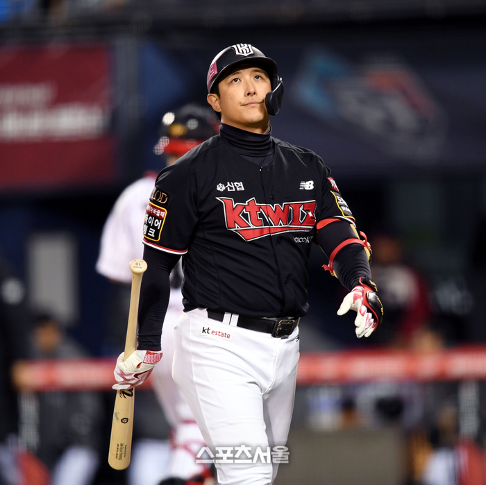 KT 이 황재균이 8일 잠실야구장에서 열린 LG와의 2023 한국시리즈 2차전 4회초 2사만루 삼진을 당한 후 아쉬워하고 있다. 2023. 11. 8. 잠실 | 최승섭기자 thunder@sportsseoul.com