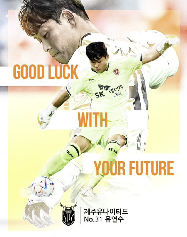 제주는 지난 8일 골키퍼 유연수의 은퇴를 알렸다. 구단 공식 채널을 통해 “딱 1년 전, 불의의 교통사고로 큰 부상을 당해 현재까지 재활에 전념하고 있는 유연수가 11일 제주월드컵경기장에서 열리는 FC서울과 ‘하나원큐 K리그1 2023’ 36라운드를 통해 오랜만에 팬 앞에 선다. 슬프게도 선수로서의 작별 인사다. 이 자리에 팬 여러분의 많은 관심과 방문으로 뜨거운 박수 부탁드린다”고 발표했다.