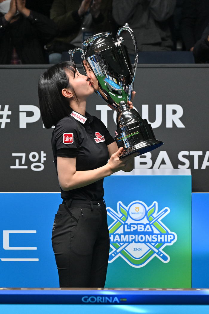 그는 지난 8일 경기도 고양시에 있는 킨텍스 PBA스타디움에서 열린 2023~2024시즌 여자 프로당구 LPBA 6차 투어 ‘NH농협카드 챔피언십’ 결승에서 팀 동료인 김예은을 세트스코어 4-2(4-11 11-4 11-5 11-5 6-11 11-8)로 제압하고 커리어 첫 챔피언에 올랐다.