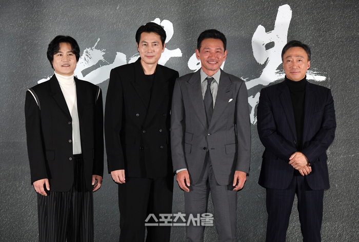 9일 서울 강남구 코엑스 메가박스에서 진행된 영화 ‘서울의 봄’ 시사회 및 기자간담회에서 출연 배우들이 취재진을 향해 포즈를 취하고 있다. 왼쪽부터 배우 김성균, 정우성, 황정민, 이성민. 영화 ‘서울의 봄’은 1979년 서울에서 일어난 신군부 세력의 반란과 이를 막으려는 9시간을 긴장감 있게 담은 작품으로 배우 황정민, 정우성, 이성민, 박해준, 김성균 등이 출연하며 김성수 감독이 연출을 맡았다. 2023. 11. 9. 박진업기자 upandup@sportsseoul.com