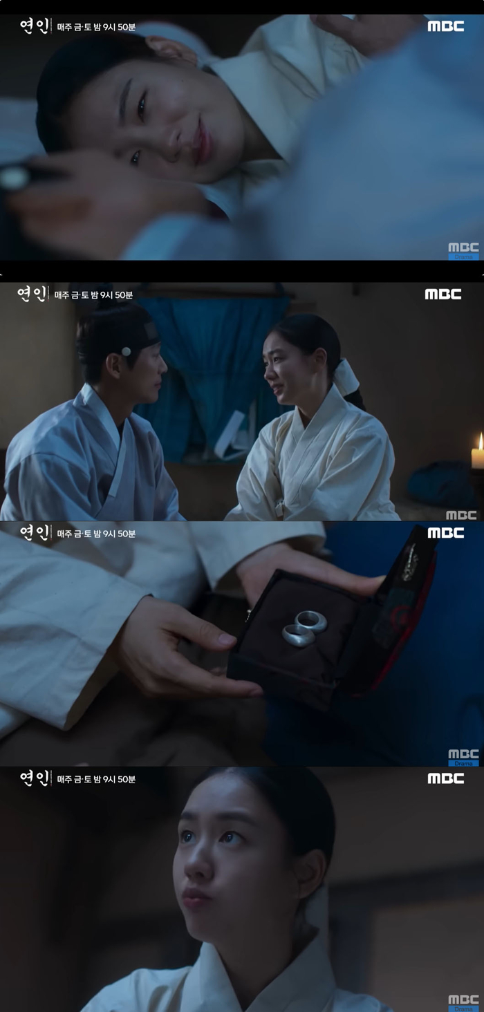 10일 방송을 앞두고 MBC 금토극 ‘연인’ 18회 선공개분이 올라온 가운데, 나란히 이부자리에 누운 장현과 길채가 차례로 눈을 뜨고 서로를 그윽한 눈길로 바라보는 모습이 그려졌다.