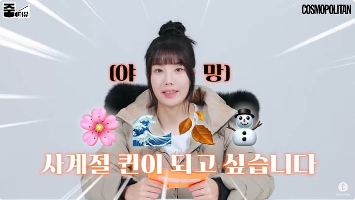 10일 유튜브 채널 ‘코스모폴리탄 코리아’에는 ‘[ENG] | 서머퀸은 잊어라! 사계절 퀸을 접수하러 온 권은비 등판! | 권은비 | 줌터뷰’라는 영상이 게재됐다.