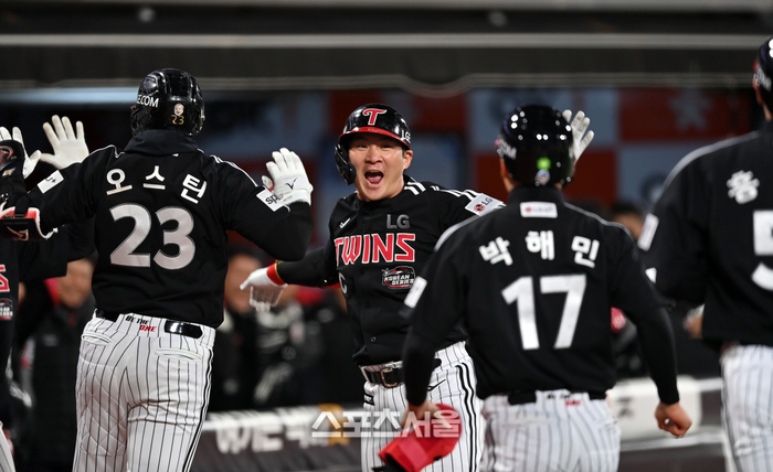LG 4번타자 오스틴이 10일 수원KT위즈파크에서 열린 2023KBO리그 LG트윈스와 KT위즈의 한국시리즈 3차전 3회초 2사 2,3루에서 벤자민을 상대로 좌월 슬런을 터트린 후 홈인하고 있다. 2023.11.10. 수원 | 강영조기자 kanjo@sportsseoul.com