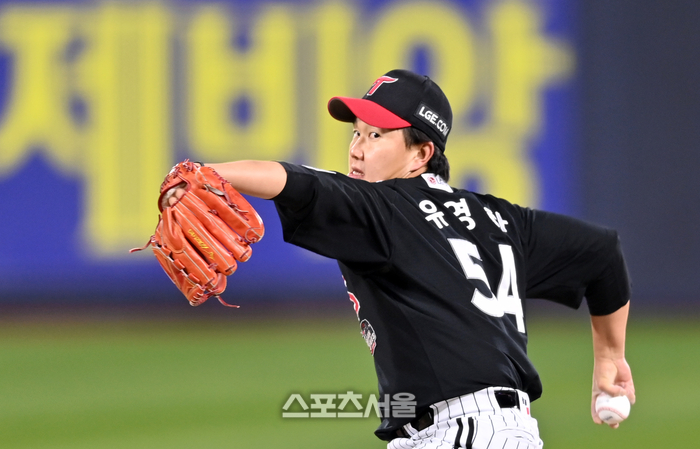 LG 우완불펜 유영찬이 10일 수원KT위즈파크에서 열린 2023KBO리그 LG트윈스와 KT위즈의 한국시리즈 3차전 6회말 무실점 피칭을 선보이고 있다. 2023.11.10. 수원 | 강영조기자 kanjo@sportsseoul.com