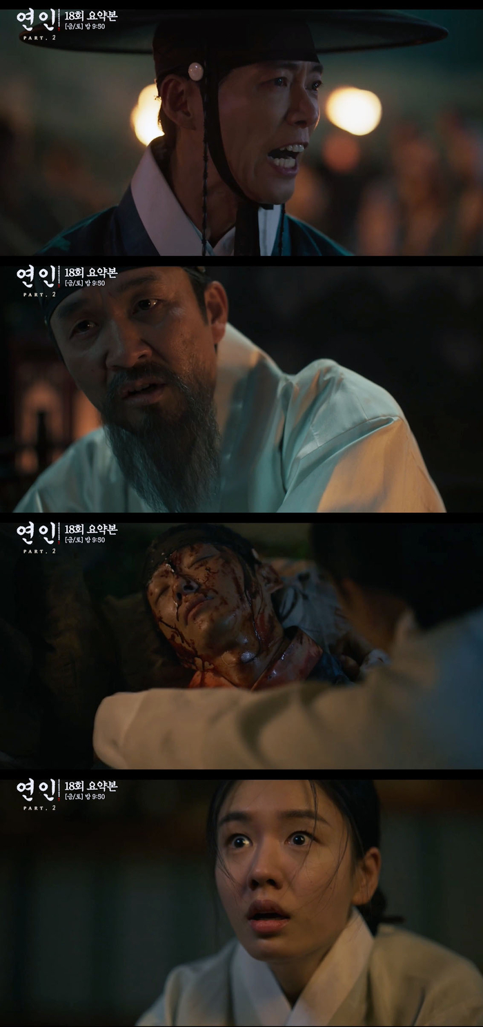 피투성이가 된 장현에게 상선은 “누구의 명을 받고 역모를 꾀했느냐. 혹 세자의 명을 받았느냐”라며 배후를 추궁했고 이장현은 분노의 눈길을 보냈다.