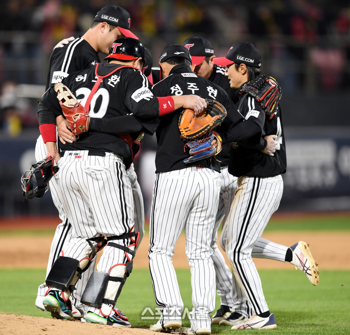 스포츠 | 야구 [포토] LG, 29년 만의 통합 우승이 '1승' 남있다 입력2023-11-11 18:06:38 북마크 페이스북 트위터 SNS 더보기 가글자크기설정 인쇄 SNS 더보기 닫기 네이버밴드 네이버블로그 URL복사 글자크기 설정 메뉴 닫기 글자크기 설정 시 다른 기사의 본문도동일하게 적용됩니다. 가 가 가 가 가 LG 선수들이 11일 수원 KT 위즈파크에서 열린 KT와 2023 한국시리즈 4차전 후 승리 세리머니를 하고 있다. 2023. 11. 11. 수원 | 최승섭기자 thunder@sportsseoul.com 기사추천 0