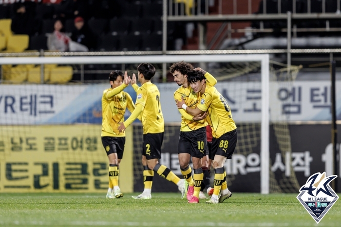 반면 이날 승리하면 최종전 결과와 관계 없이 K리그2 우승과 더불어 1부 다이렉트 승격을 확정할 수 있었던 부산은 승점 69로 제자리걸음하며 선두를 지켰다. 2위 김천 상무(승점 68)와 승점 차는 1이다.