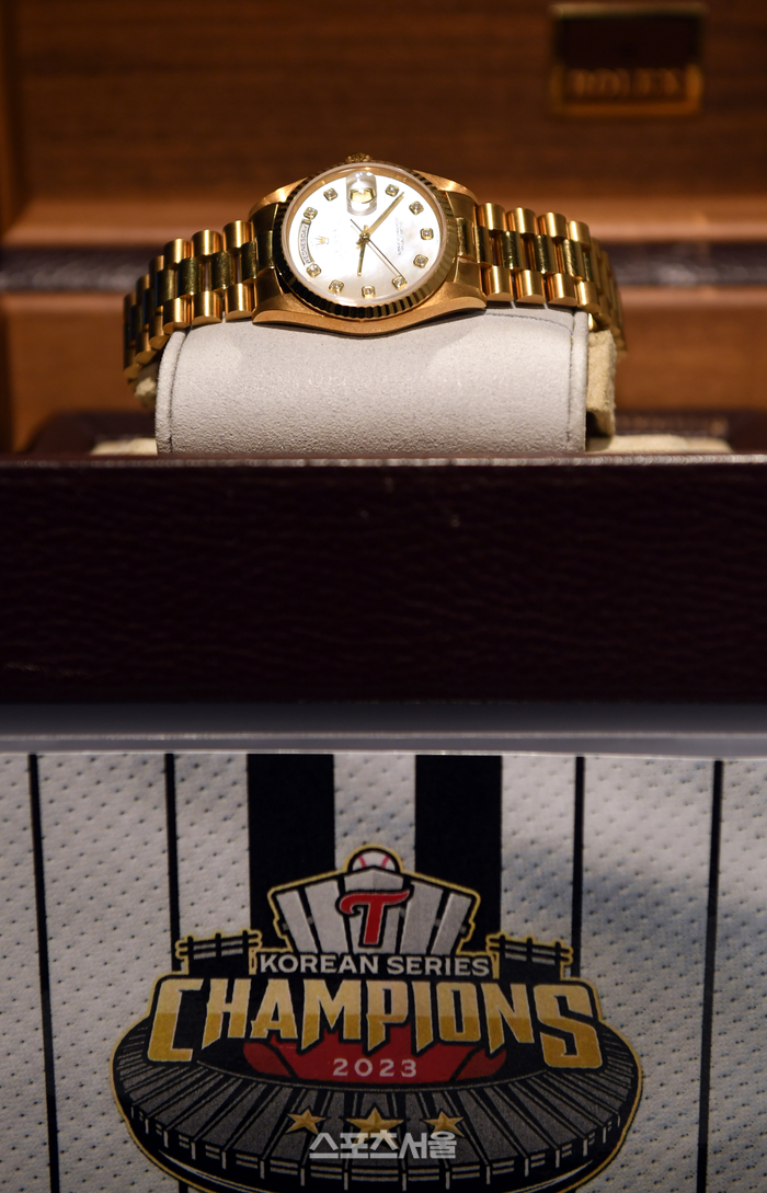 롤렉스 시계를 두고는 “실물은 못봤다. 고민이 많다. MVP에게 시계를 준대서 받겠지만, 차고 다니기에는 부담스럽다. 선대 회장님 유품이니까, 구광모 회장께 드리고 더 좋은 선물 받고 싶다. 요즘 시대에 걸맞은 시계 받고 싶다”고 바람을 전했다.
