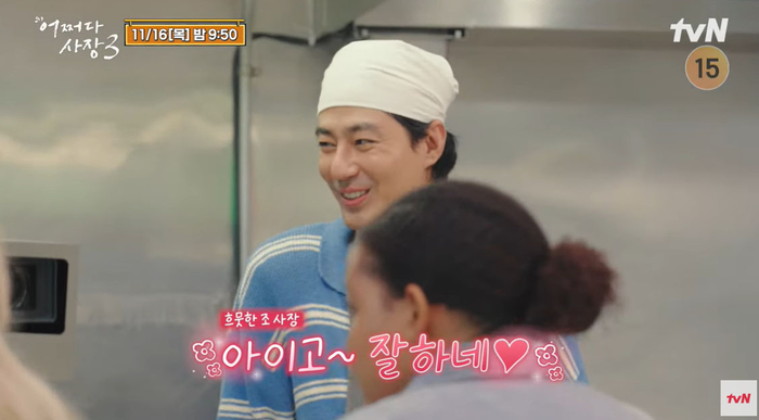 14일 공개된 tvN ‘어쩌다 사장3’ 선공개 영상에서 조인성이 손수 끓인 황태해장국을 먹는 미국 여자 손님 2명이 등장했다.