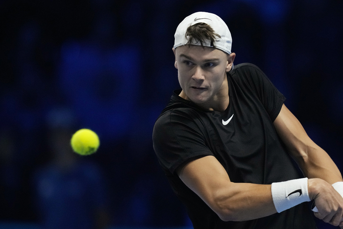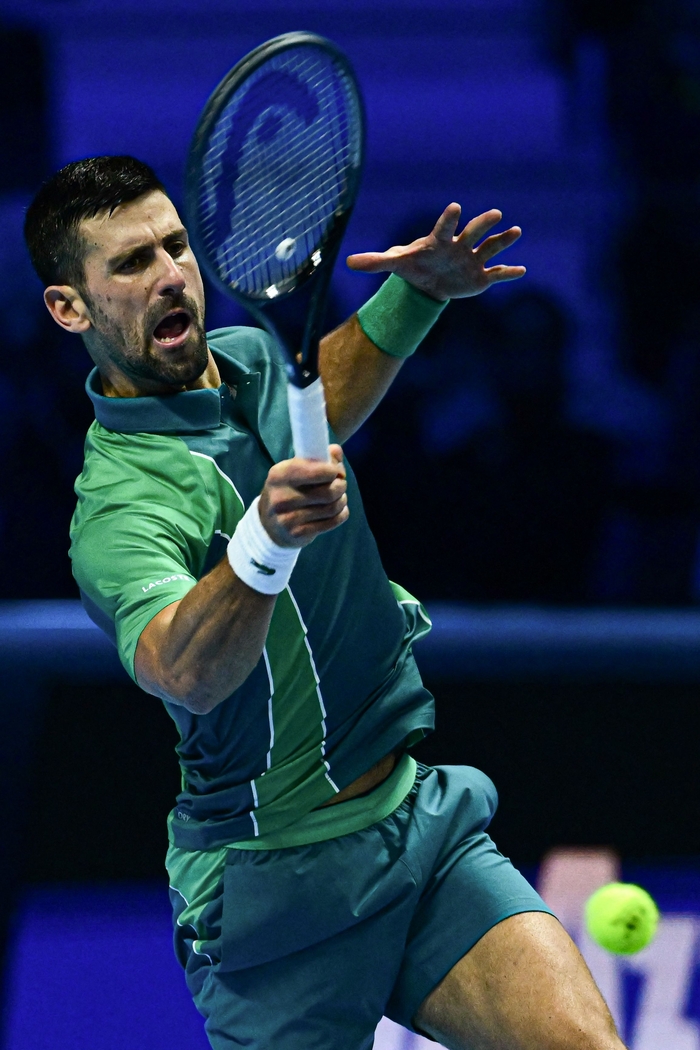 14일(현지시간) 이탈리아 토리노의 팔라 알피투어 스타디움(실내 하드코트)에서 계속된 2023 ATP 파이널 단식 그린그룹 2라운드에서다.