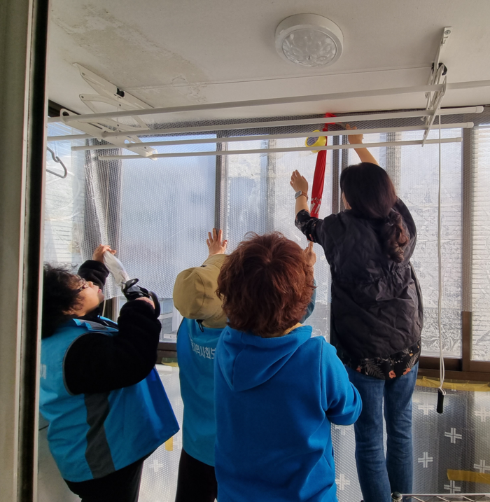‘훈훈한 겨울나기 뽁작뽁작’ 지원사업은 ‘뽁뽁이’와 ‘작업하다’라는 말을 합성한 사업명으로, 밥상공동체종합사회복지관은 뽁뽁이를 후원하고 원인동지역사회보장협의체 위원들과 원인동 마을관리소 활동가들은 직접 대상 가구를 방문해 뽁뽁이를 부착했다.